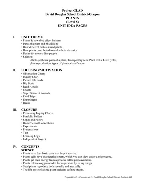 Read Online Project GLAD IDEA PAGES I UNIT THEME II Doc Library Genesis